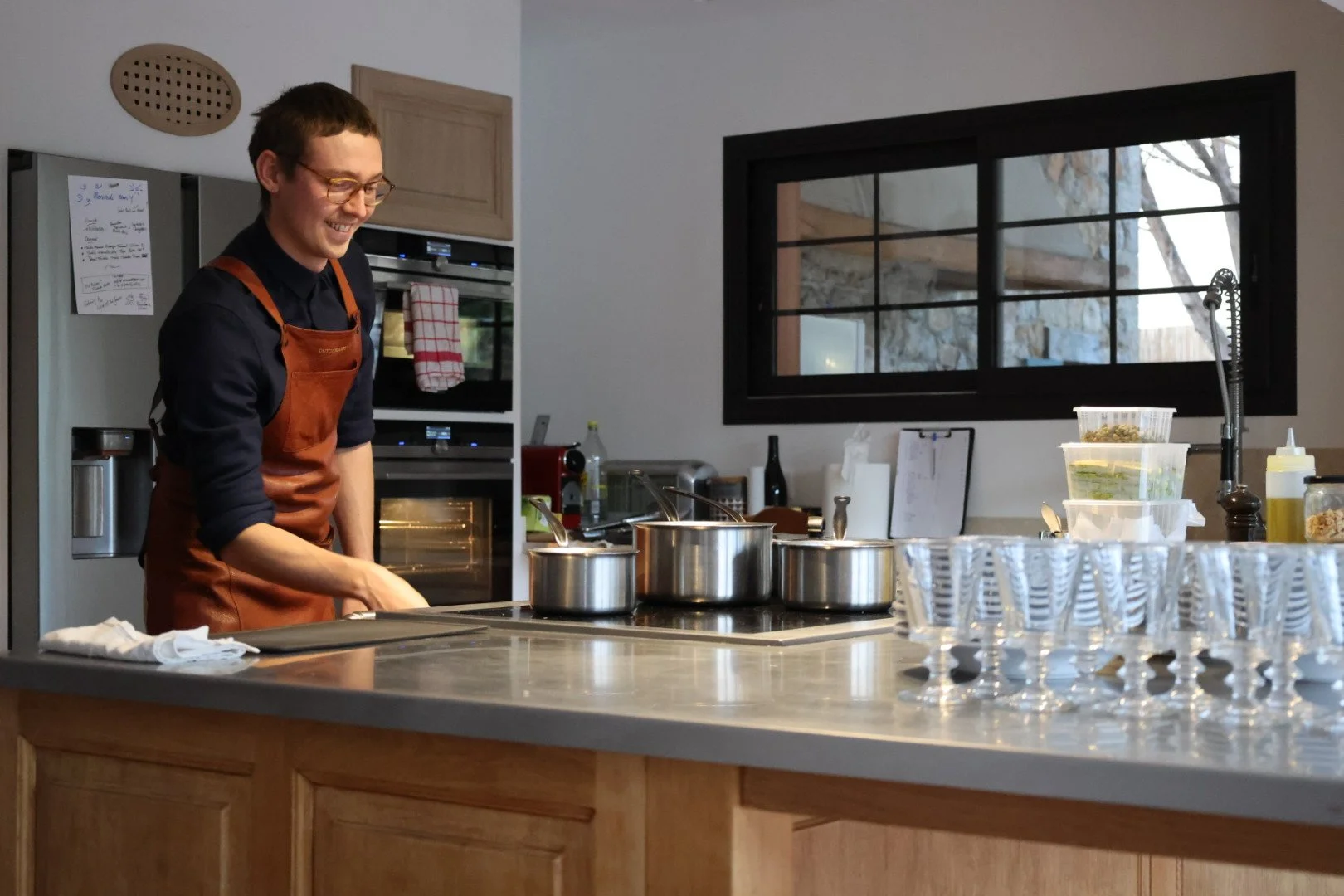 We take inspiration from the morning market, working with the best seasonal ingredients. Our base kitchen is in the medieval village of Tourrettes-sur-Loup, a foodie destination worth a visit, where we mise en place your menu. It's tiny, but we still manage to find space for growing fresh herbs, pickling and fermenting.